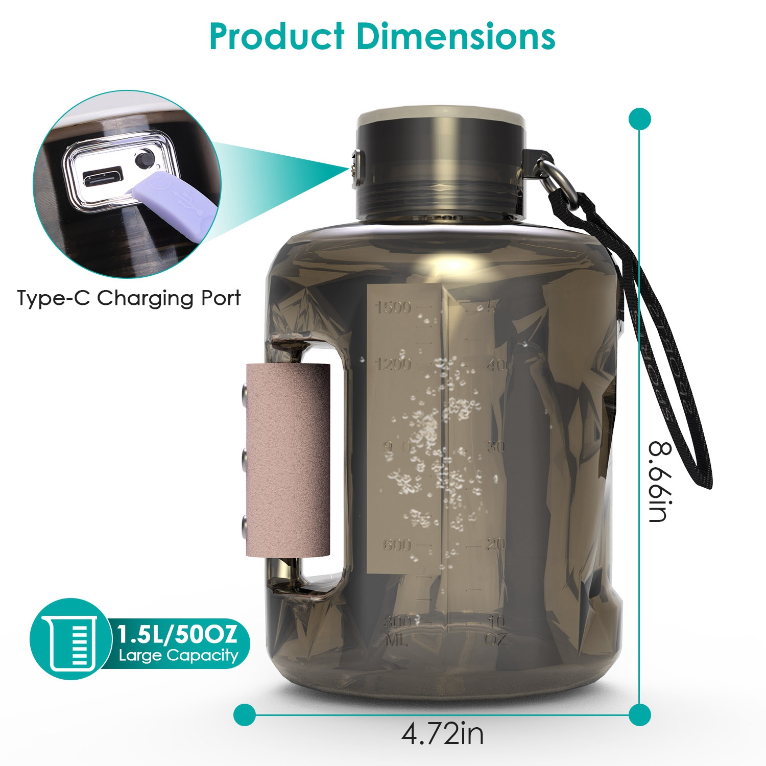 Bottle Material: Food-Safe PC Body, PU Handle Cover